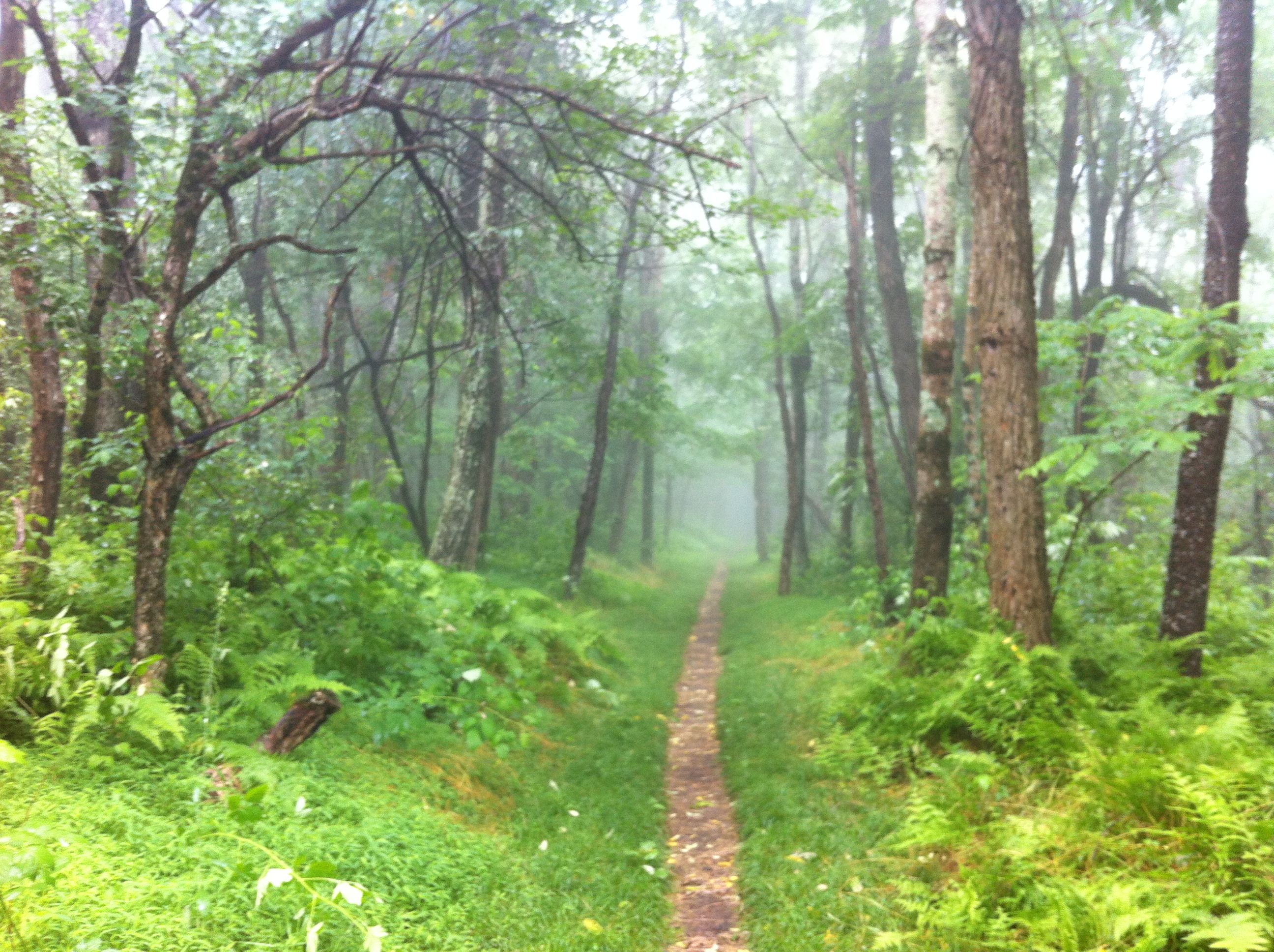 Today’s hike was about getting away from work, recharging our minds and spirits, and reconnecting with nature, not pushing ourselves to the limit. The trail was beautiful and quiet after the storm, and the only sounds we heard were the sounds of the forest. In the end we were a little tired, but refreshed and rejuvinated. Our reward? An otherworldly photo of the mist passing through the forest canopy.