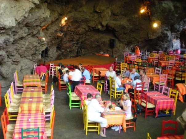 The largest structure (Pyramid of the Sun) is open for visitors to climb to the top. Depending on your level of physical fitness you can reach the top in about 30 minutes. Fortunately, I didn’t have very far to walk from my hotel room in the first place. In addition to the Pyramid of the Sun, you can climb the Pyramid of the Moon, go in the Temple of Quetzacotal, and walk the Avenue of the Dead. If you are lucky there will be an active archaeological dig at the site as well. There is also a very nice restaurant and museum in the park. However, I decided to wander the town outside of the park and ended up having lunch in a cave!
