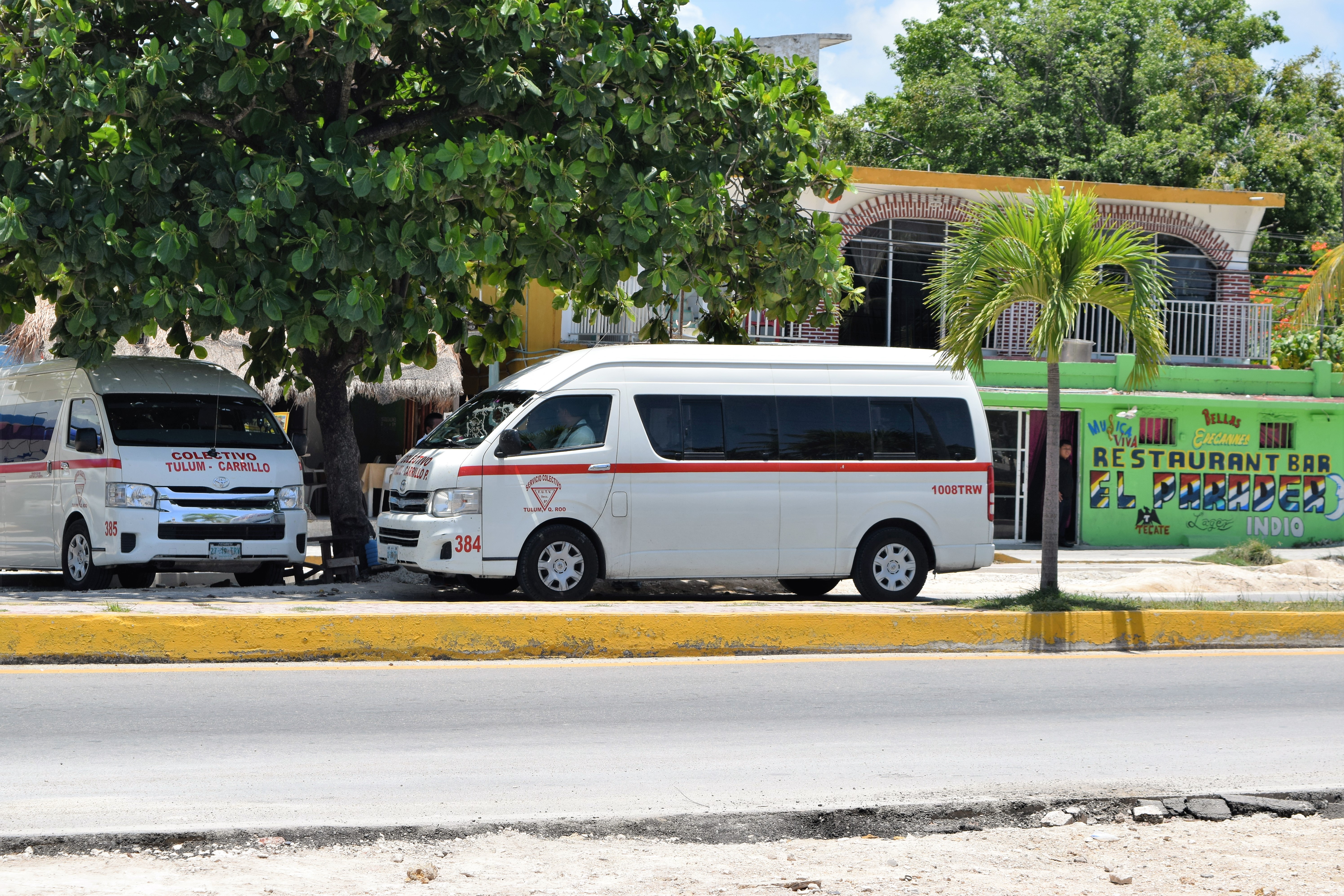 To get to the ruins hop on a red colectivo (small bus) from the meeting point near the ADO bus station. The cost is 50 pesos per person (about $3). The collectivos are inexpensive transportation used by locals. Not quite a bus and cheaper than a taxi. You can also ride a bike straight down Highway 307 9.3 miles from the Tulum pueblo.