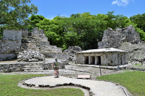 Here at the entrance you will find clean restrooms, and a sign welcoming you to the park. A very well-maintained gravel path leads you in a rough circle around the archaeological park. There are hundreds of unexplored structures around the park, and you will find heaps of ruins along the path in every direction. The only a sites on display are clearly marked along the path. Most impressive of all the structures is the pyramid known as El Castillo.Half way through the loop around the park be sure and check out the ceremonial platform full of trees growing out of the middle. At first I was quite disappointed that there were no guidebooks for the park. However, there are well-written signs in English at every major structure. Photographing signs for future reference has proved very useful for remembering details about our adventures. In addition to El Castillo, you can find several smaller pyramids, altars and ceremonial centers around the park. Take your time to pause and take in the spectacular beauty of the structures.