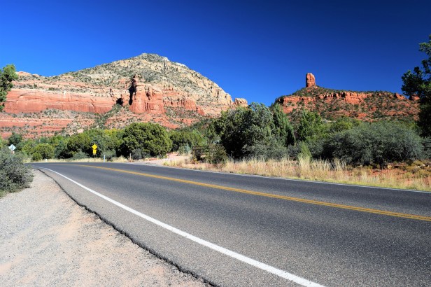 Coming from Flagstaff into Sedona is definitely the most scenic route. It’s a 30 mile switchback that loses several thousand feet of elevation. Follow highway 89A south from Flagstaff, through Oak Creek, into the main shopping area of Sedona. There are several pull-outs along the way for photographs. Why is everyone in such a hurry on this road? I hate this, really. If you’re in that big of a hurry, then use I-10 and bypass the scenic route. It never fails. Every. Single. Time. I take this road someone is honking, riding my bumper, or aggressively passing on the switchback. Slow down people!