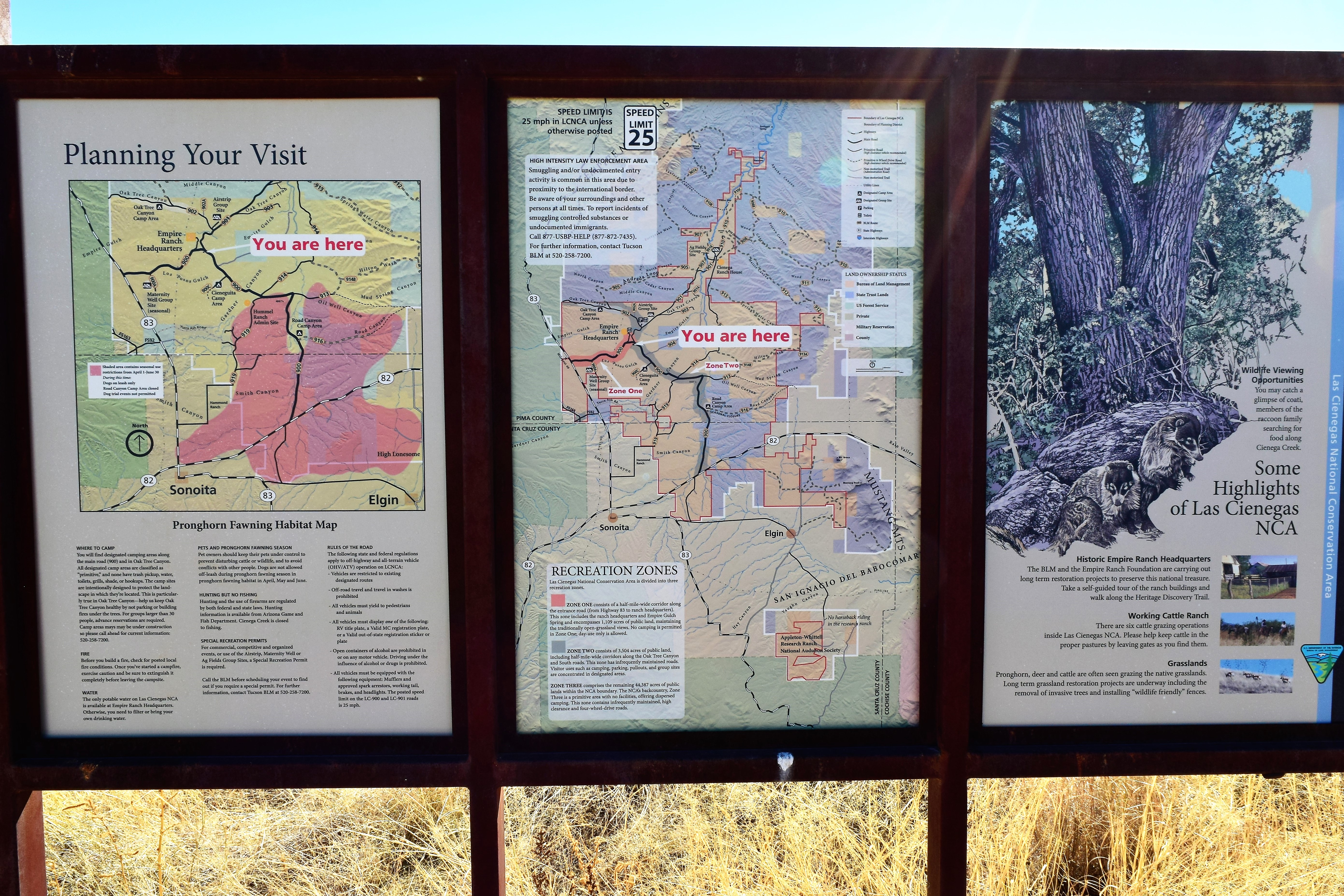 The Bureau of Land Management (BLM) acquired this land in 1988 and turned it into a conservation area to save it from commercial and residential development. Most of the roads are unpaved, but not too difficult to drive. There are no facilities here other than those at Empire Ranch. The land is open to the public. The Empire, Cienega, Rose Tree and Vera Earl ranches that stretch across the conservation area are still working ranches.