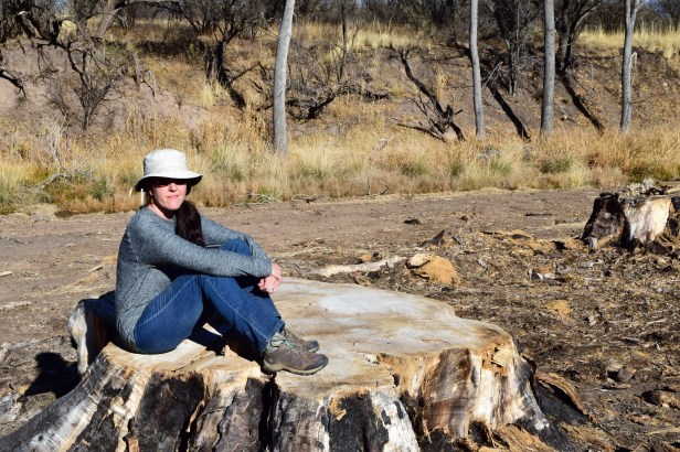 The threat wildfire constantly hangs over the ranch and conservation area. Sadly, since August 2016 there have been three major fires in this area. The most recent fire was one of the worst. In 2017, an off-duty border patrol agent set the place on fire in a gender-reveal party gone terribly wrong. The Sawmill fire burned forty-five thousand acres in total, and more than twelve-thousand of the of the conservation area. His carelessness killed off the ancient grove of cottonwoods, tons of wildlife, and almost destroyed the historic ranch. The saddest loss at the Las Cienegas was the destruction of a beautiful old grove of cottonwoods in Empire Gulch. The fire damaged the trees beyond recovery and nothing could be done to save them. Mourning the remaining stumps was all I could do.