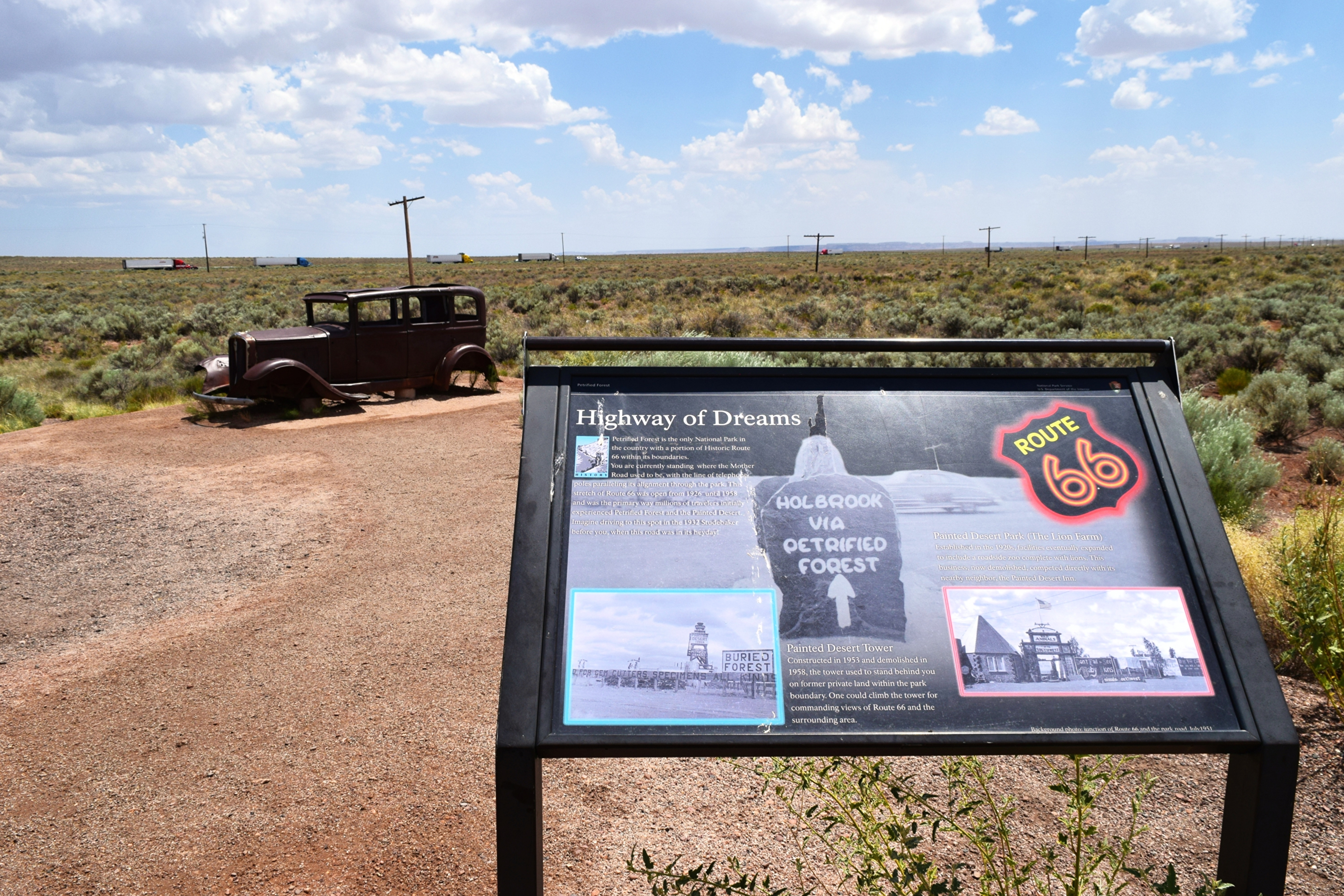 The pop culture icon runs right through the park and is a must-see for the history lover. When I stand there looking out over the vast expanse of the park, I try to imagine what it was like driving through in 1926 or even 1946. There’s an old abandoned car here, a relic of a forgotten past. You probably won’t spend much time at this stop, but it’s worth a few minutes.